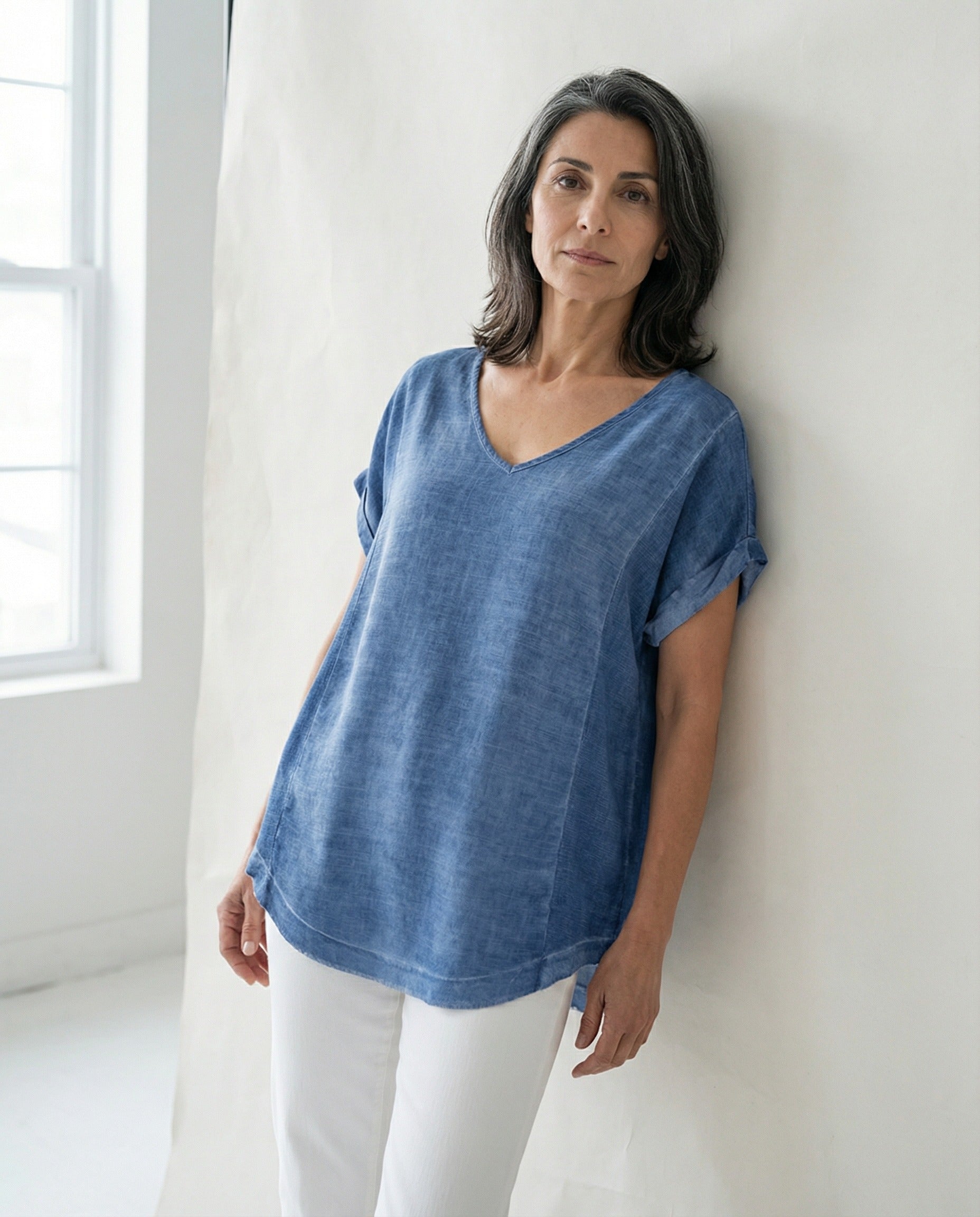 Cleo Linen Top - Denim Blue